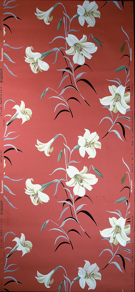 This is a Sidewall. It was manufactured by Atlas Wall Paper Mills, Inc.. It is dated 1936–50 and we acquired it in 1991. Its medium is machine-printed. It is a part of the Wallcoverings department.