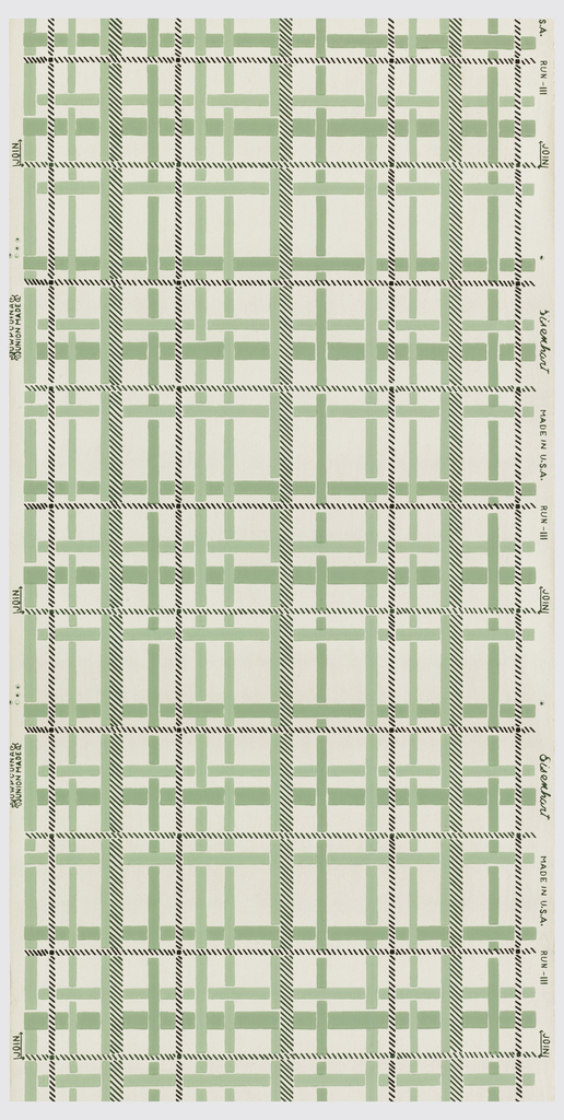 Printed on selvage: "JOIN, U.W.P.C. OF N.A. UNION MADE, MADE IN U.S.A. RUN III"