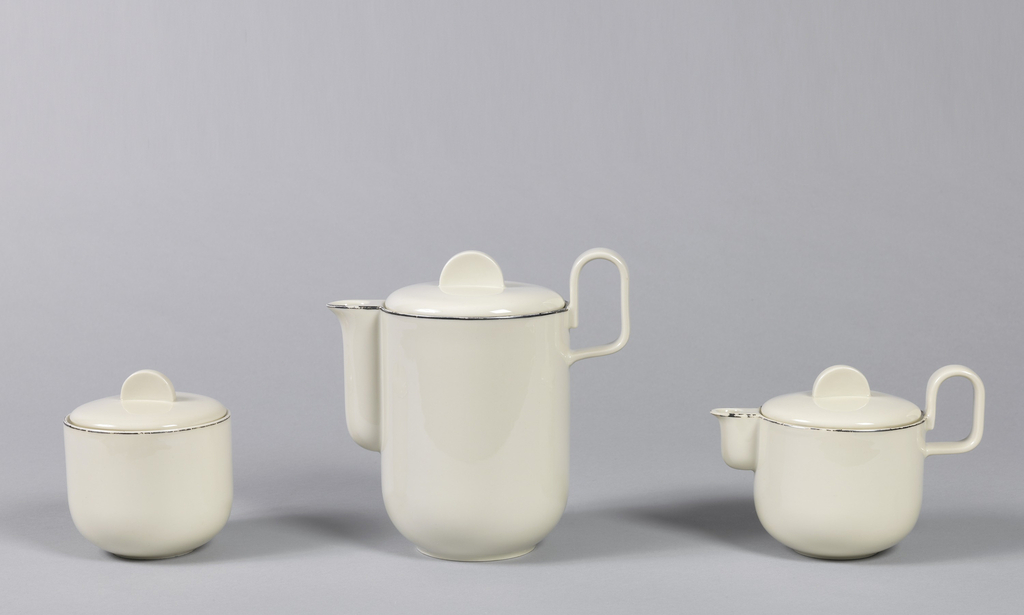 This is a Sugar bowl and lid. It is dated ca. 1935 and we acquired it in 1992. Its medium is porcelain. It is a part of the Product Design and Decorative Arts department.