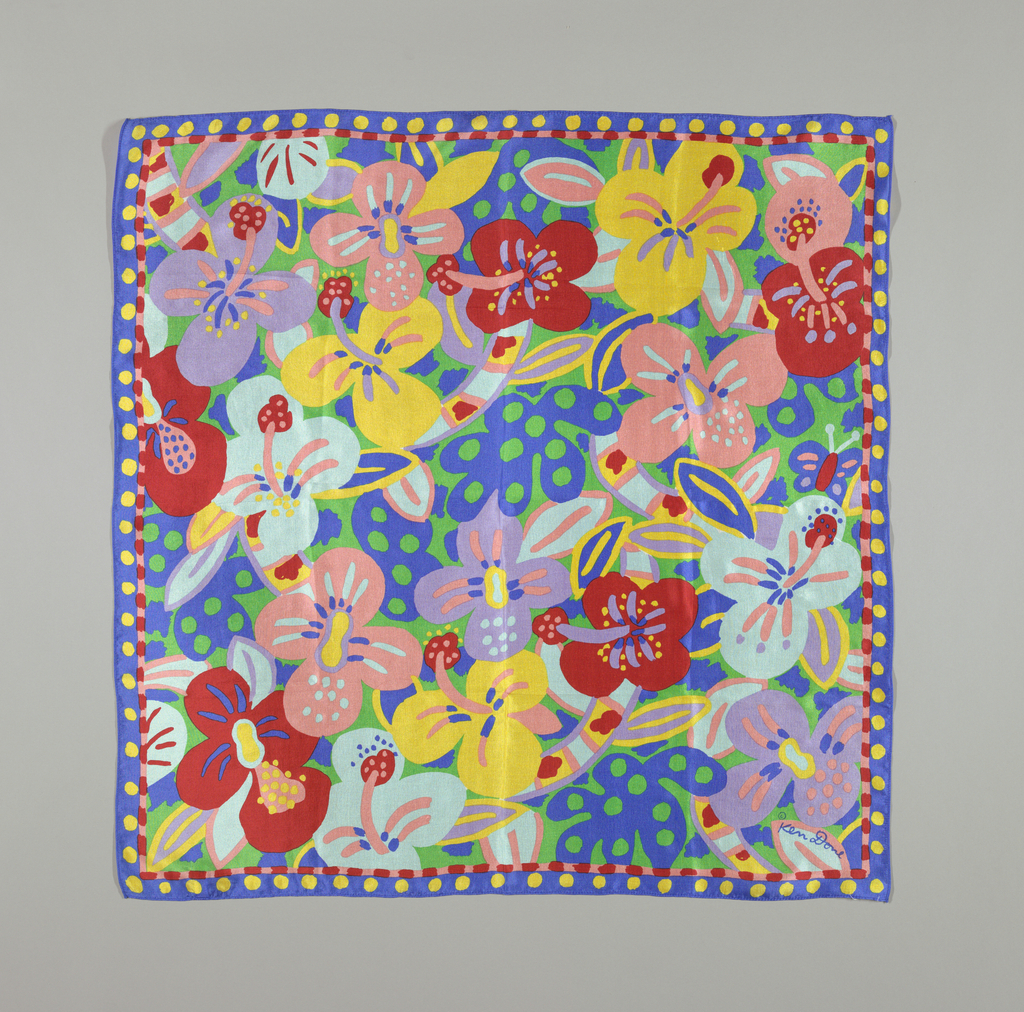 This is a Scarf. It was designed by Ken Done. It is dated ca. 1985 and we acquired it in 1992. Its technique is printed. It is a part of the Textiles department.
