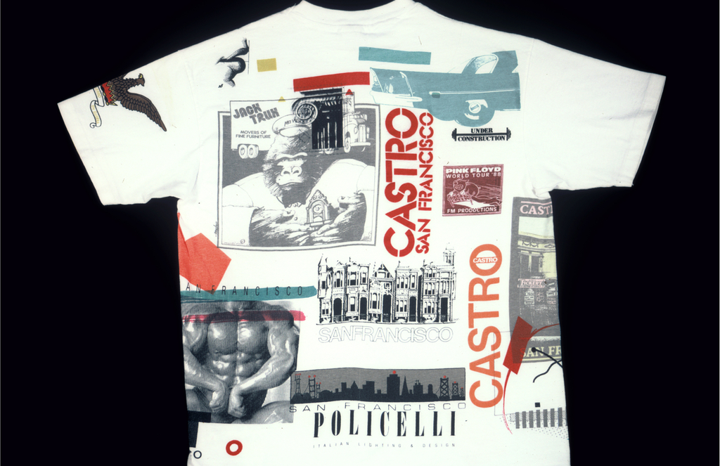 T-shirt (USA); Designed by David Exley (1948 – 1990); Height: 73cm (28 3/4in.) Width (sleeve edge to selleve edge): 91.5cm (36in.).; Gift of Eddie Squires; 1992-3-7