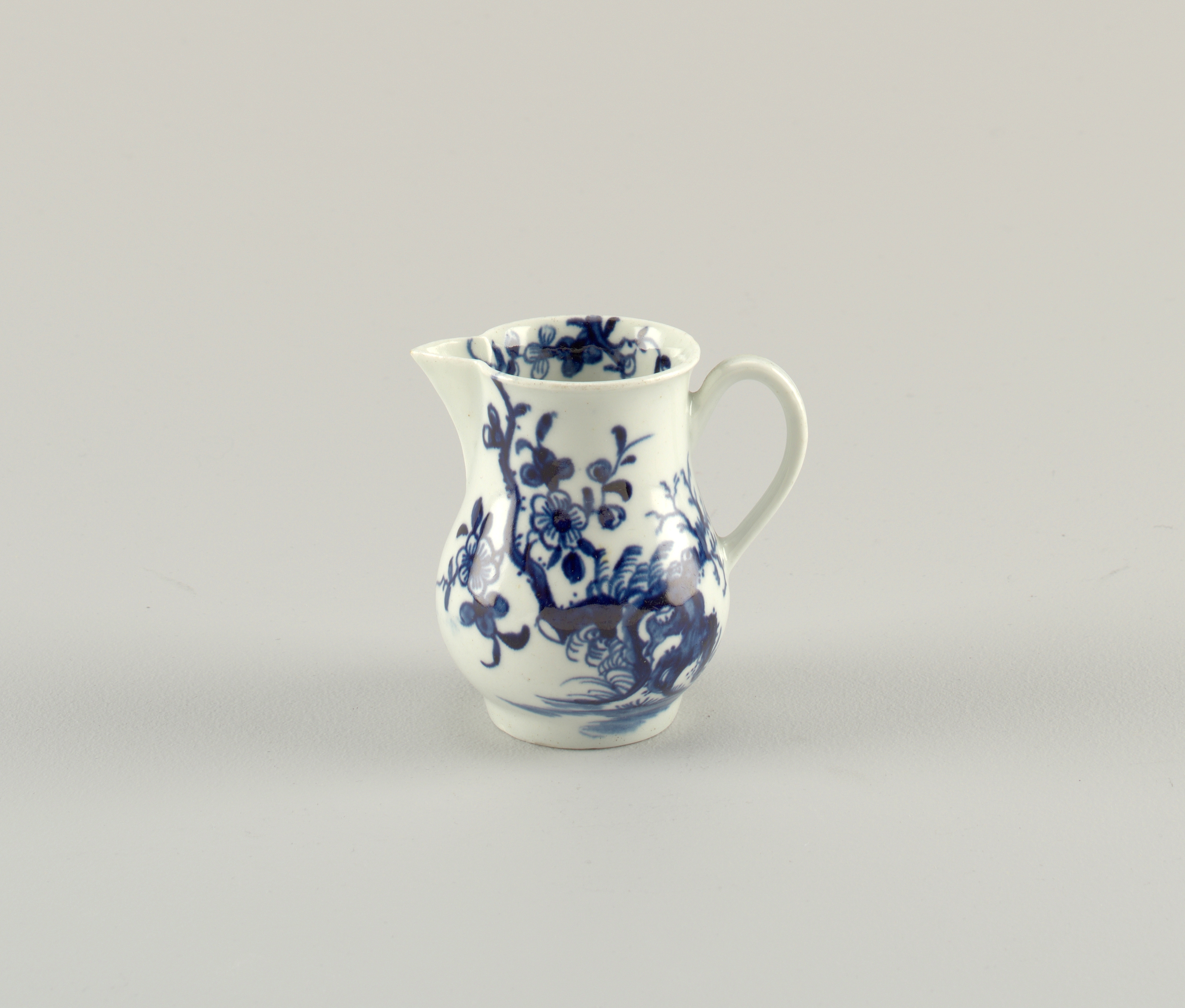 This is a creamer. It was manufactured by Royal Worcester. It is dated ca. 1770 and we acquired it in 1992. Its medium is soft paste porcelain, vitreous enamel. It is a part of the Product Design and Decorative Arts department.