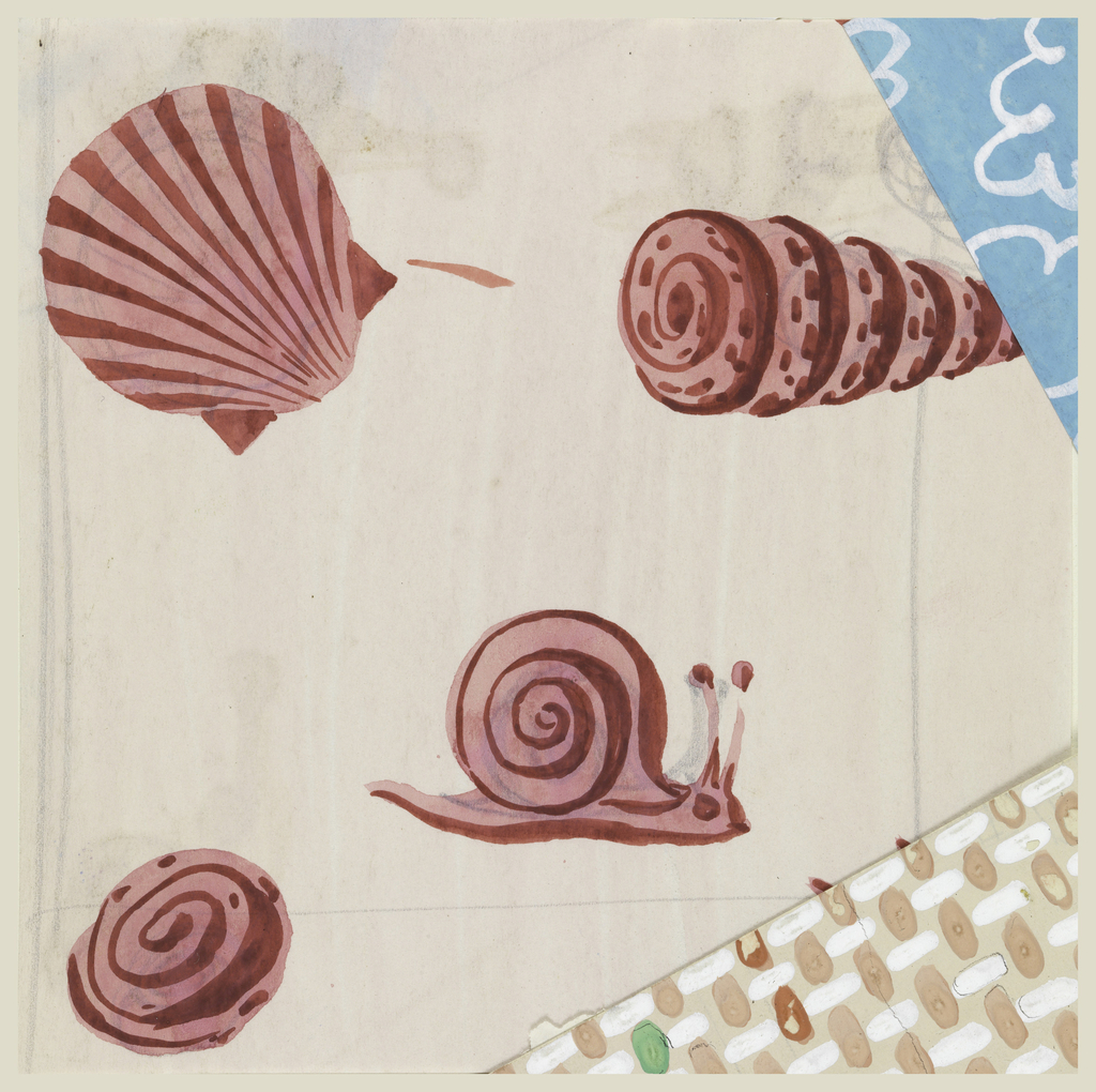 Drawing, Shell Design (3 of 5); Designed by Tommi Parzinger (American, b. Germany, 1903–1981); USA; brush and gouache, graphite on paper, lined; Sheet: 11.2 x 11 cm (4 7/16 x 4 5/16 in.) Image: 11.1 x 11.4 cm (4 3/8 x 4 1/2 in.); Gift of Donald Cameron; 1992-51-84