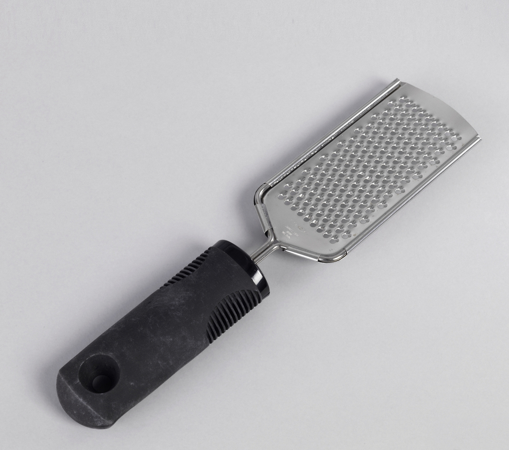 Good Grips Grater; Designed by Davin Stowell (American, b. 1953), Tucker Viemeister (American, b. 1948), Daniel Formosa (American, b. 1953), Stephen Russak (American, b. 1962), Stephen Allendorf (American, b. 1954), Michael Calahan (American, b. 1965), Jürgen Laub (German, b. 1964), Stephen Wahl (American,); Manufactured by OXO International (United States); Firm: Smart Design, Inc. (United States); USA; steel (stainless), santoprene (thermoplastic rubber); 25.4 cm x 5.1 cm x 2.5 cm (10 in. x 2 in. x 1 in.); Gift of OXO; 1992-52-6