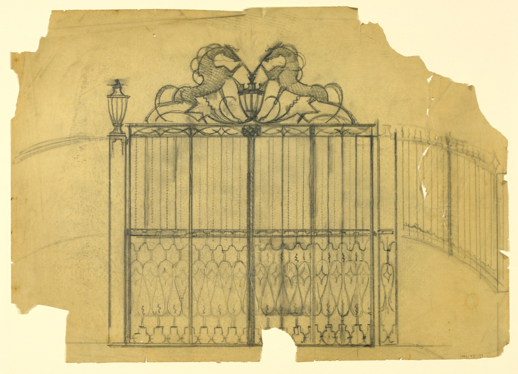 Drawing, Design for Gate, Horses; Designed by William Hunt Diederich (American, b. Hungary, 1884–1953); USA; graphite on tracing paper; 27 × 38 cm (10 5/8 × 14 15/16 in.); Gift of Diana Diederich Blake; 1992-92-137