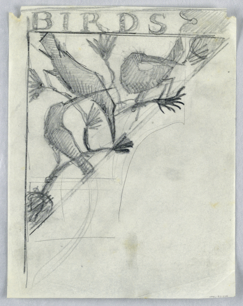 Drawing, Design for Signpost, Birds; Designed by William Hunt Diederich (American, b. Hungary, 1884–1953); USA; charcoal, graphite on paper; 27.5 x 21.3 cm (10 13/16 x 8 3/8 in.); Gift of Diana Diederich Blake; 1992-92-178