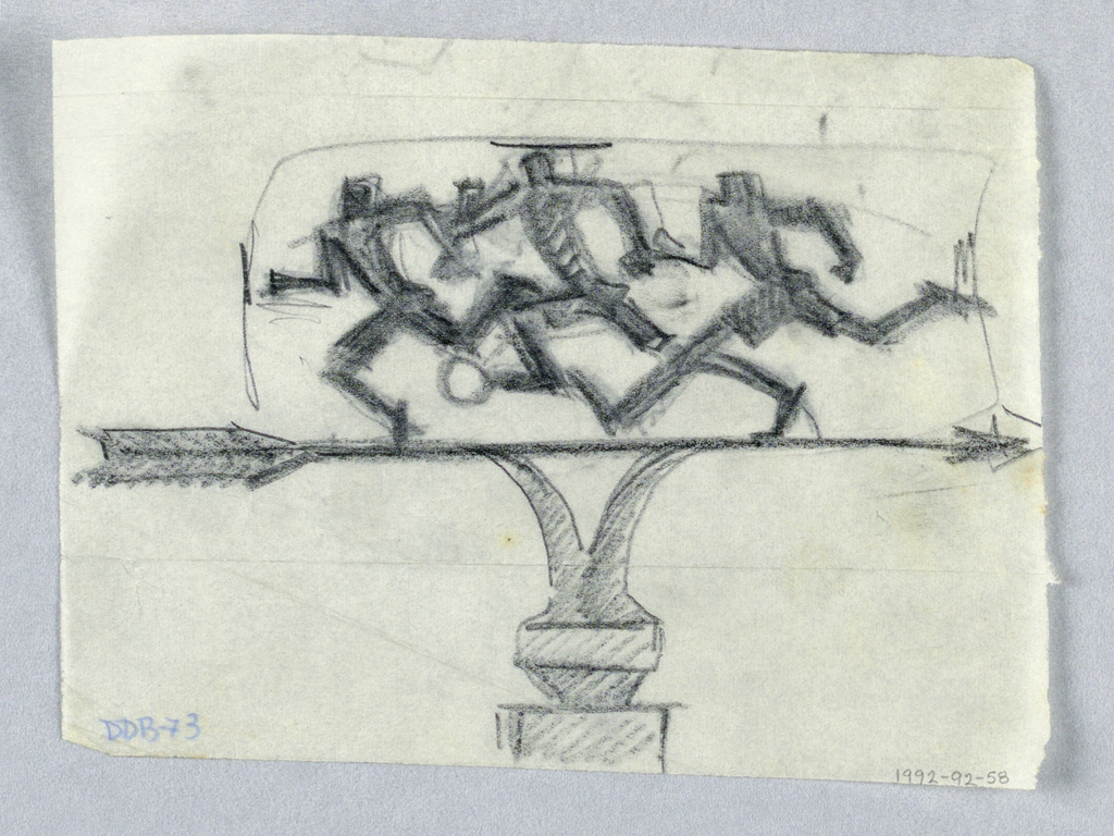 Drawing, Design for Gymnasium Signpost, Soccer; Designed by William Hunt Diederich (American, b. Hungary, 1884–1953); USA; graphite on tracing paper; 12.6 x 17 cm (4 15/16 x 6 11/16 in.); Gift of Diana Diederich Blake; 1992-92-58