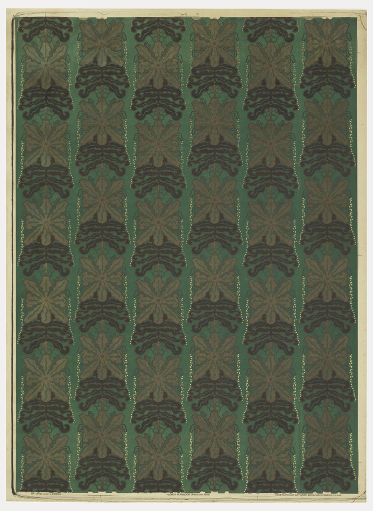 This is a Sidewall. It was designed by Lambertus Zwiers and manufactured by Nederlandsch-Artistiek-Behangselfabriek. It is dated 1912–17 and we acquired it in 1993. Its medium is lithograph printed on paper. It is a part of the Wallcoverings department.
