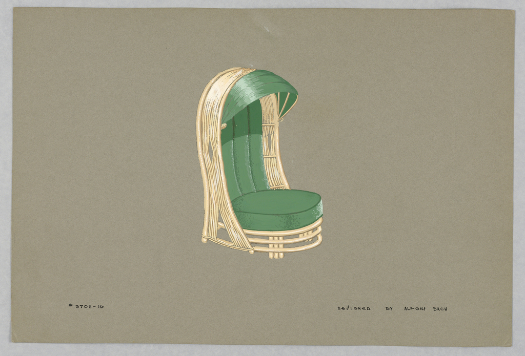 Drawing, 16. Bamboo canopy chair i; Designed by Alfons Bach (American, b. Germany, 1904–1999); USA; chalk, watercolor; Gift of Alfons Bach; 1993-108-152