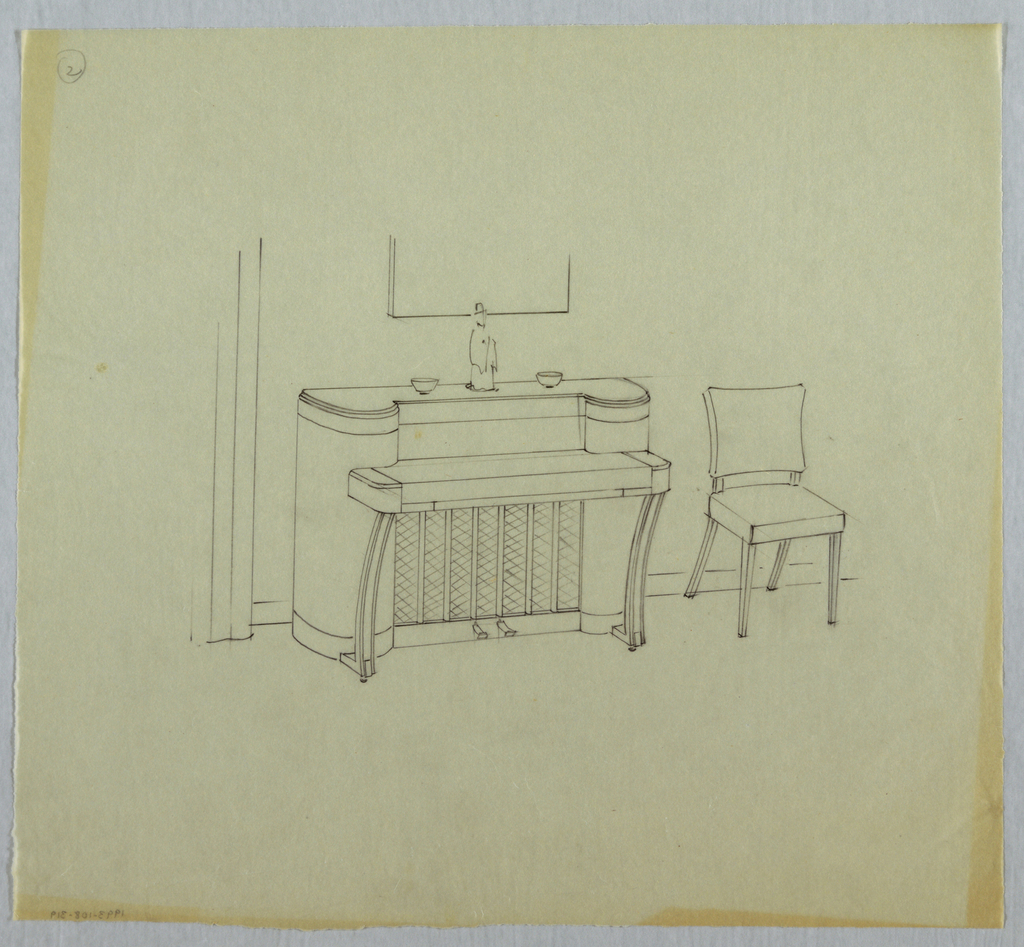 Drawing, 2. Piano with concave fro; Designed by Alfons Bach (American, b. Germany, 1904–1999); USA; graphite, tracing paper; Gift of Alfons Bach; 1993-108-319