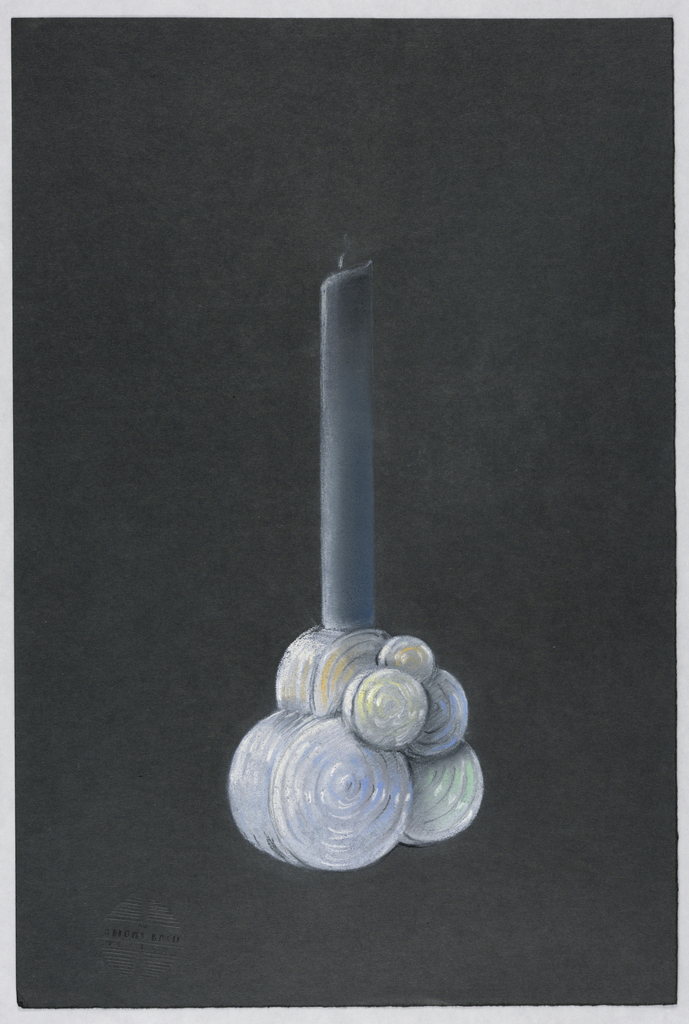 Drawing, Candlestick holder with circular motif; Designed by Alfons Bach (American, b. Germany, 1904–1999); USA; chalk, brush and gouache on black paper; 46.2 x 30.9 cm (18 3/16 x 12 3/16 in.); Gift of Alfons Bach; 1993-108-329