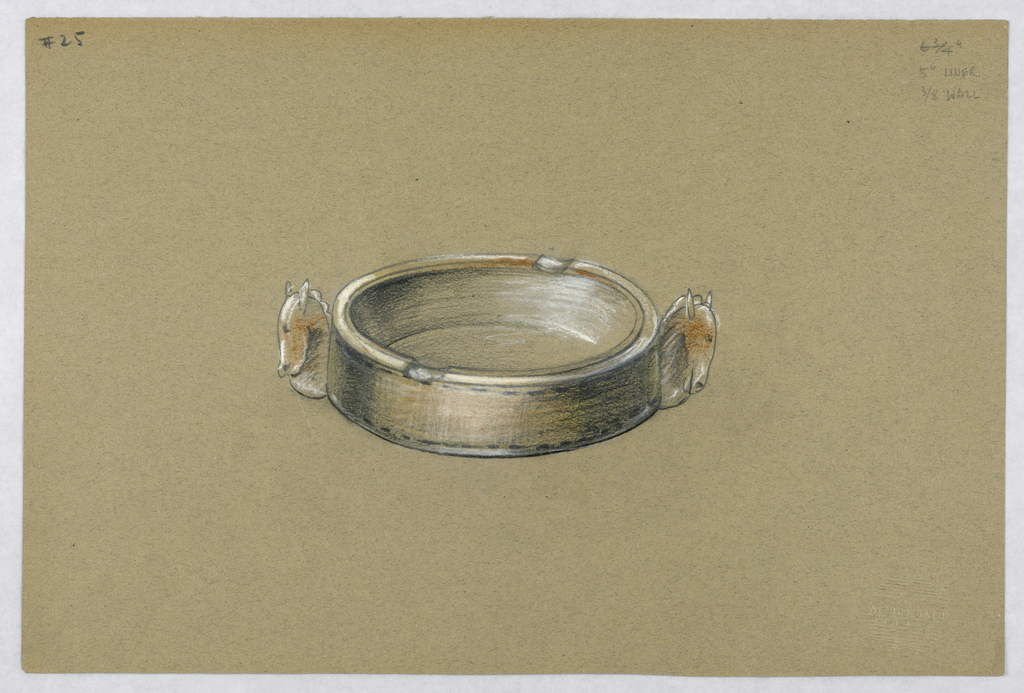 Drawing, #25 Ashtray with horse's; Designed by Alfons Bach (American, b. Germany, 1904–1999); USA; watercolor, chalk; Gift of Alfons Bach; 1993-108-374