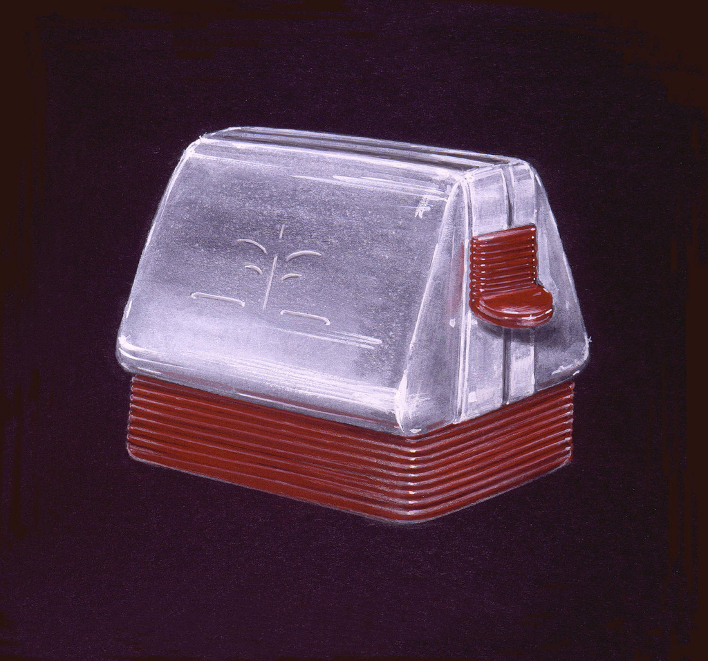 Drawing, Design for Toaster; Designed by Alfons Bach (American, b. Germany, 1904–1999); Client: General Electric Company; USA; brush and watercolor, gouache over graphite on heavy black construction paper; 51.2 x 33.9 cm (20 3/16 x 13 3/8 in. ); Gift of Alfons Bach; 1993-108-382