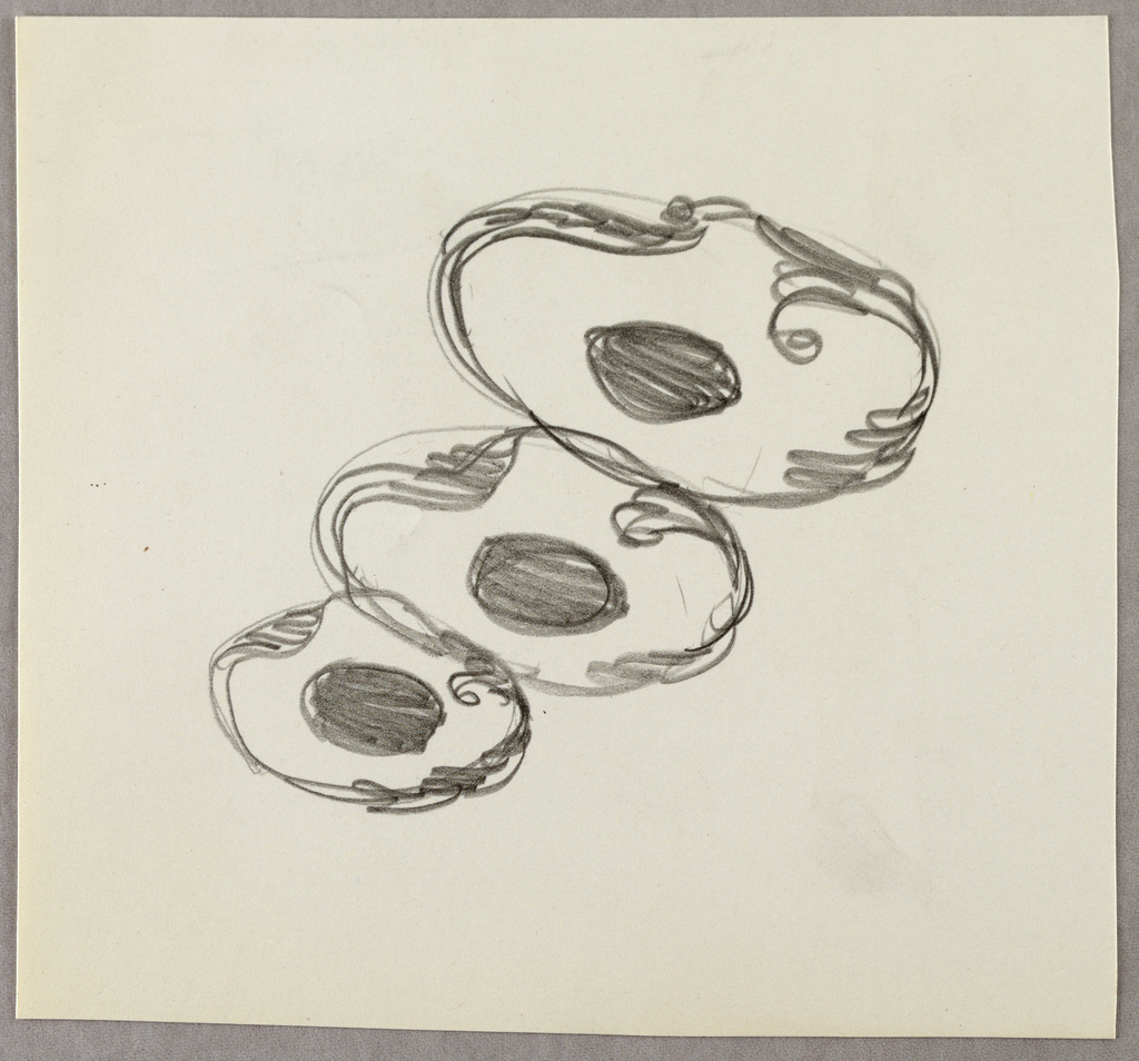 Drawing, Three oval/shell shapes; Designed by Alfons Bach (American, b. Germany, 1904–1999); USA; graphite, white paper; Gift of Alfons Bach; 1993-108-405