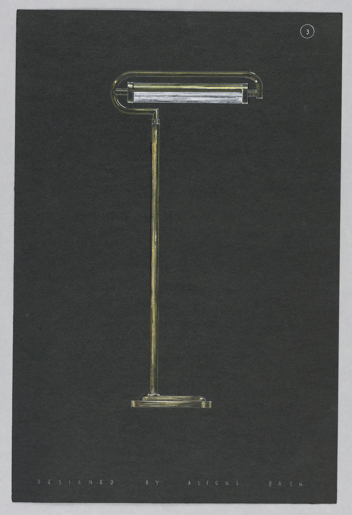 Drawing, 3. Floor lamp with horizo; Designed by Alfons Bach (American, b. Germany, 1904–1999); USA; chalk, watercolor, wash, black paper; Gift of Alfons Bach; 1993-108-75