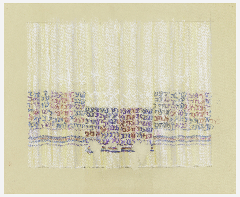 Drawing, Design for Ark Curtain, Beth Am Synagogue, Los Altos, CA; USA; brush and gouache, graphite on cream cardboard; H x W: 33 × 52.7 cm (13 in. × 20 3/4 in.); Gift of Mr. Eric and Mrs. Sylvia Elsesser, The Trude Guermonprez Archives; 1993-121-72