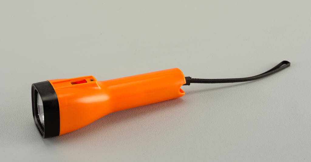 This is a flashlight. It is dated ca. 1980 and we acquired it in 1993. Its medium is plastic. It is a part of the Product Design and Decorative Arts department.