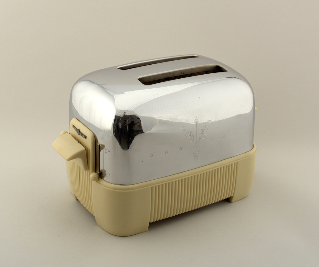"A" model Toaster; Manufactured by General Electric Company; USA; metal, plastic; 18.2 x 30.5 x 17.5 cm (7 3/16 x 12 x 6 7/8 in.); Museum purchase from Decorative Arts Association Acquisition Fund; 1993-150-41
