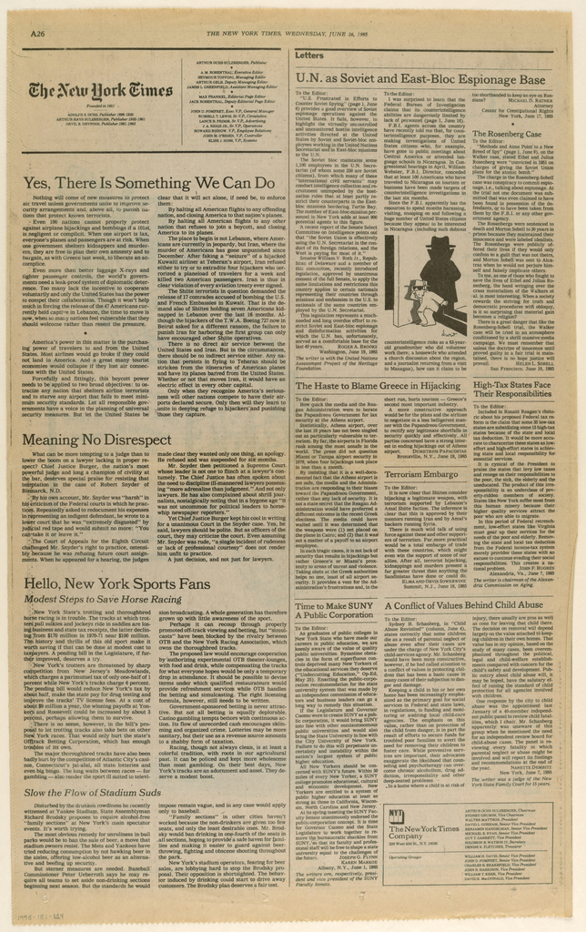 This is a Advertisement. It was overseen (as design director) by Tibor Kalman and firm: M&Co. It is dated June 26, 1985 and we acquired it in 1993. Its medium is offset lithography. It is a part of the Drawings, Prints, and Graphic Design department.