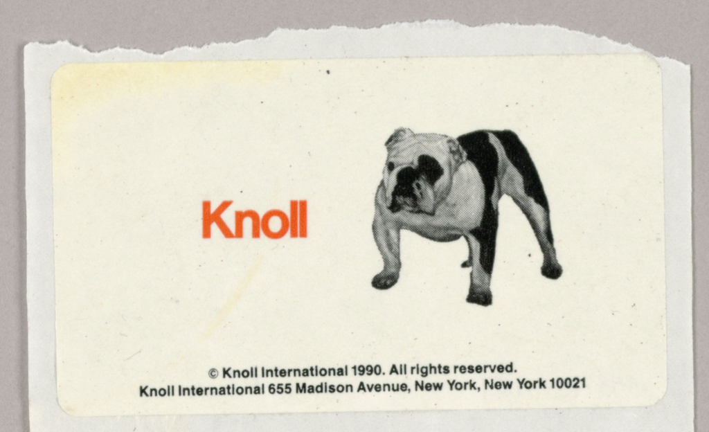 Sticker, Knoll International: Bulldog (TM) Chair Icon; Design Director: Tibor Kalman (American, b. Hungary, 1949–1999); USA; offset lithography; 4.4 x 7.5 cm (1 3/4 x 3 in.); Gift of Tibor Kalman/ M & Co.; 1993-151-159