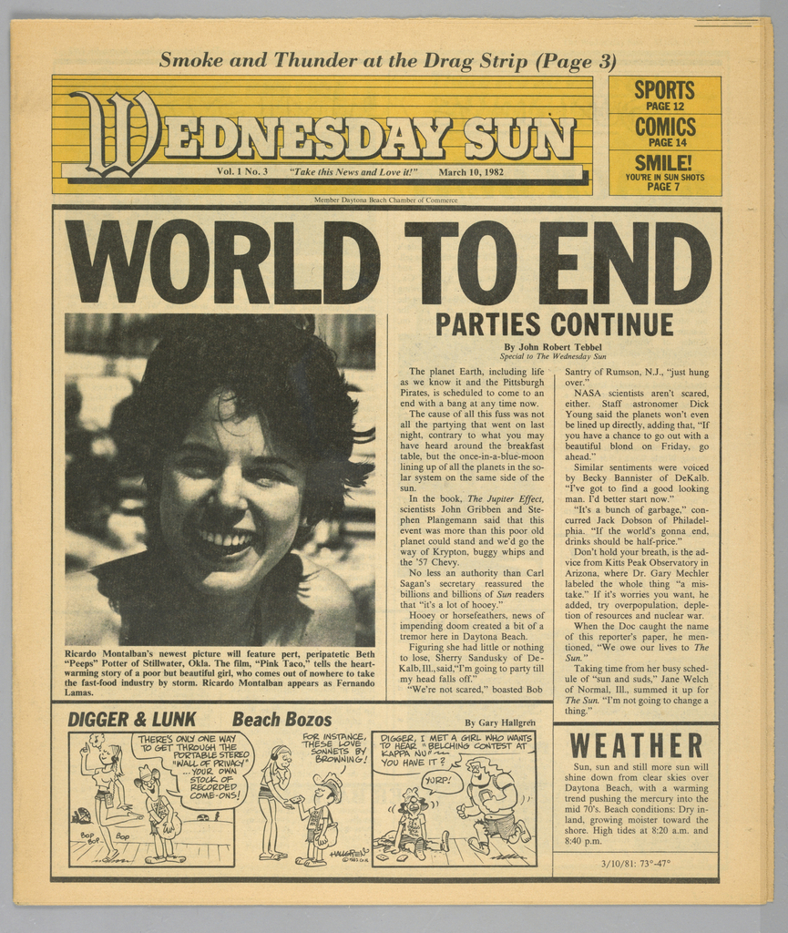 Newspaper, The Sun: Wednesday Sun; Design Director: Tibor Kalman (American, b. Hungary, 1949–1999); Firm: M&Co (United States); USA; Gift of Tibor Kalman/ M & Co.; 1993-151-263