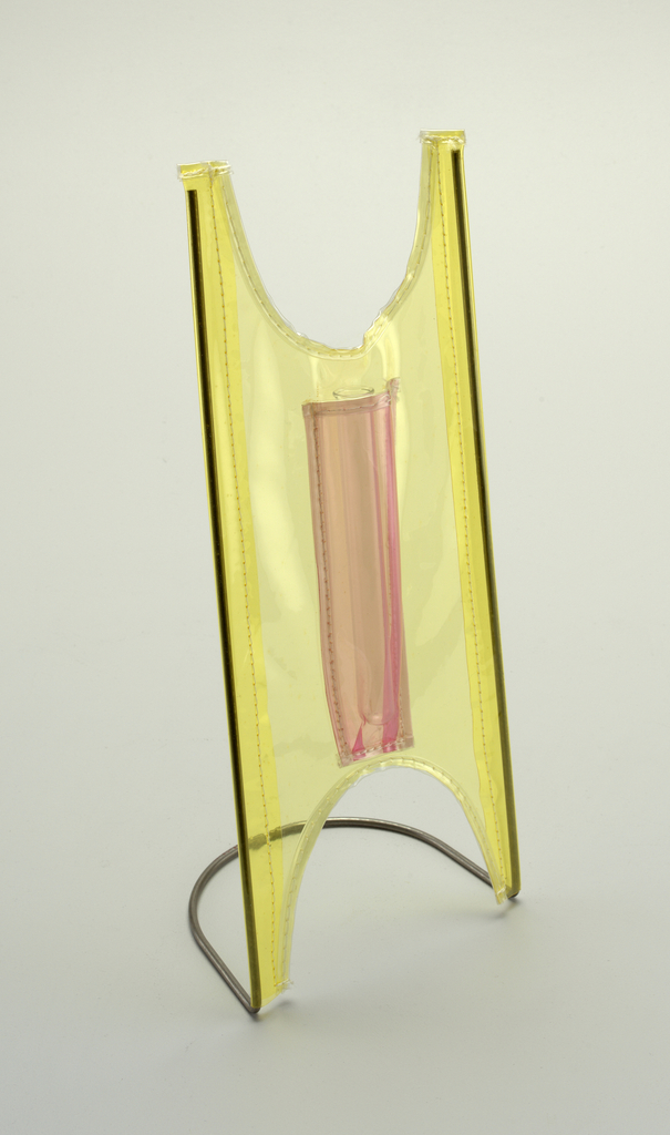 Flexi Vase; Designed by Miguel Calvo; USA; vinyl, metal, glass, thread; Overall: 37.6 x 13 x 15 cm (14 13/16 x 5 1/8 x 5 7/8 in.); Gift of Gallery 91; 1993-29-1-a,b