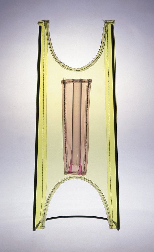 Flexi Vase; Designed by Miguel Calvo; USA; vinyl, metal, glass, thread; Overall: 37.6 x 13 x 15 cm (14 13/16 x 5 1/8 x 5 7/8 in.); Gift of Gallery 91; 1993-29-1-a,b