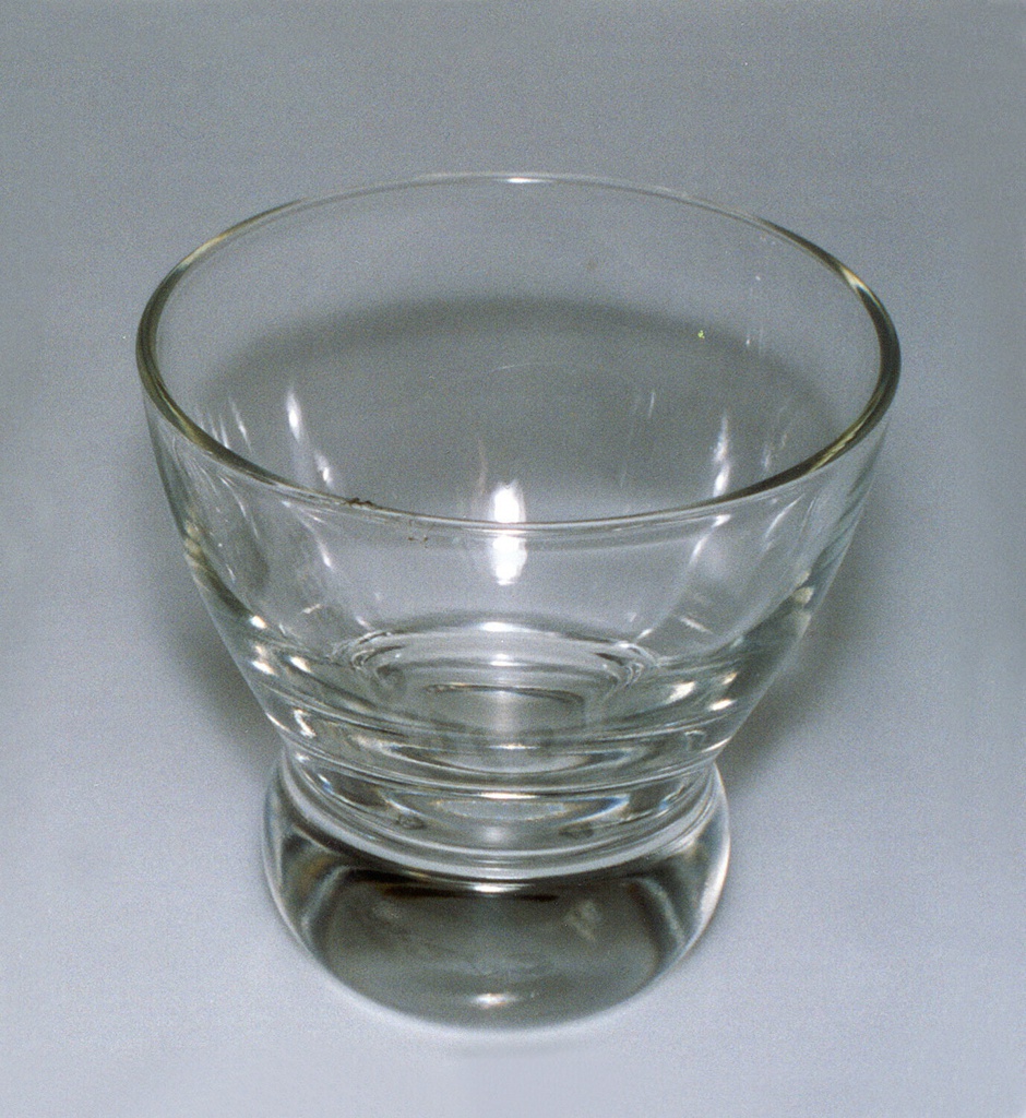 This is a drinking glass. It was designed by Eva Zeisel and manufactured by Federal Glass Co.. It is dated 1954 and we acquired it in 1993. Its medium is glass. It is a part of the Product Design and Decorative Arts department.
