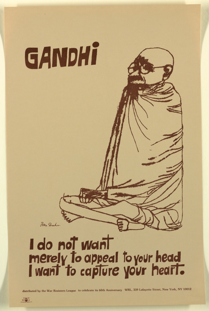 Poster, Gandhi; Designed by Ben Shahn (Lithuanian, active USA, 1898–1969); Printed by The Print Shop; Published by War Resisters League; USA; offset lithograph on paper; 43 x 28 cm (16 15/16 in. x 11 in.); Gift of Steven Heller and Karrie Jacobs; 1993-53-89