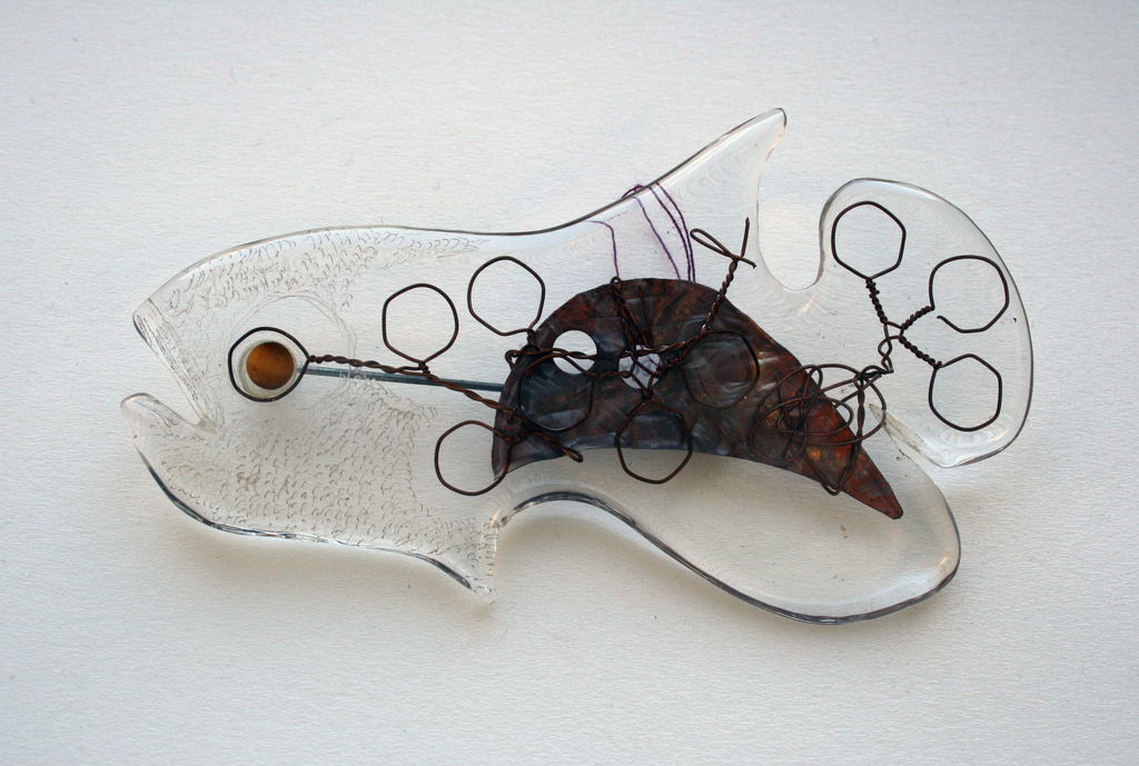 This is a brooch. It was designed by Lily Ascher. It is dated 20th century and we acquired it in 1993. Its medium is resin, copper, metal. It is a part of the Product Design and Decorative Arts department.