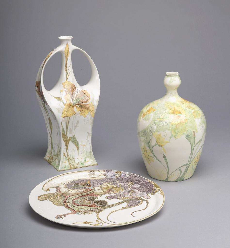 Two-Handled Vase Vase; Manufactured by Rozenburg Pottery and Porcelain Factory (Netherlands); Painted by Samuel Schellink (1876 – 1958); Netherlands; porcelain, vitreous enamel; H x W x D: 30 x 14.7 x 11 cm (11 13/16 x 5 13/16 x 4 5/16 in.); Gift of Arthur Altschul; 1994-117-3