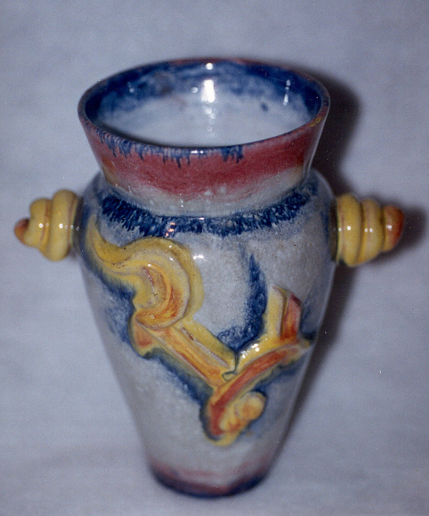 This is a Vase. It was designed by Valerie Wieselthier and manufactured by Wiener Werkstätte. It is dated ca. 1920 and we acquired it in 1995. Its medium is glazed earthenware. It is a part of the Product Design and Decorative Arts department.