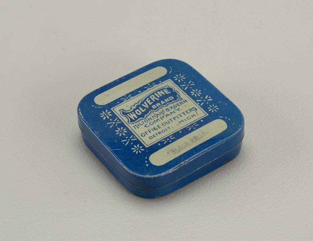 Wolverine Box; USA; metal; 1.5 x 6.5 x 6.4 cm (9/16 x 2 9/16 x 2 1/2 in.); Gift of Carole Krohn; 1994-126-3