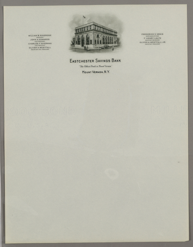 Letterhead, Eastchester Savings Bank/; Manufactured by William T. Manning Company; USA; photogravure on paper; Gift of Edward T. and Mimi I. Manning; 1994-14-12