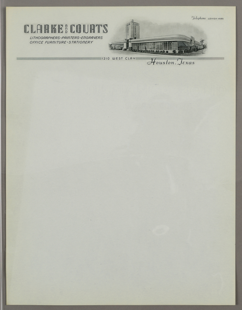 Letterhead, Clarke and Courts Lithogr; Manufactured by William T. Manning Company; USA; photogravure on paper; Gift of Edward T. and Mimi I. Manning; 1994-14-19