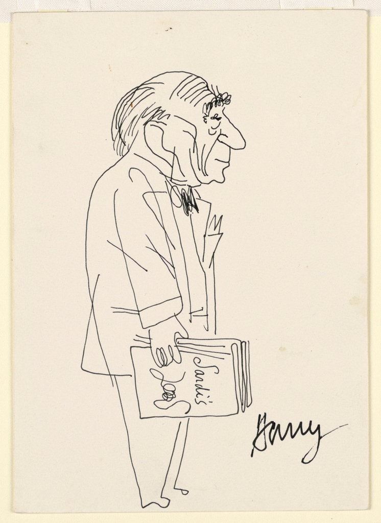 Drawing, Maitre d' with Sardi's Menu in Hand; Alfred Bendiner (American, 1899–1964); USA; pen and black ink on white wove paper; Gift of the Alfred and Elizabeth Bendiner Foundation; 1994-21-8