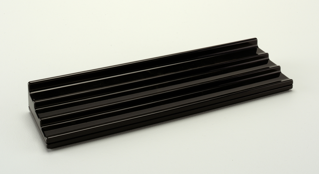 This is a Pen tray. It was designed by Rino Pirovano and manufactured by Rexite SpA. It is dated 1980 and we acquired it in 1994. Its medium is abs plastic. It is a part of the Product Design and Decorative Arts department.