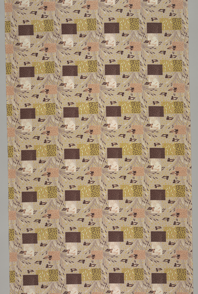 Textile, Duck Blind; Designed by Albert John Pucci (American, b. 1920); Made for Associated American Artists (United States); USA; cotton; H x W: 198.1 × 89.5 cm (6 ft. 6 in. × 35 1/4 in.); Museum purchase through gift of Mrs. Edward Stern; 1994-38-11