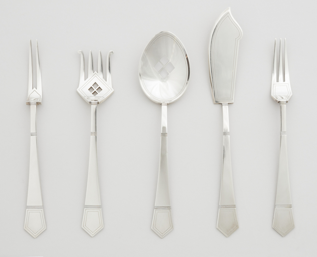 This is a fork. It was manufactured by J.M. van Kempen and Son, Voorschoten. It is dated ca. 1905–10 and we acquired it in 1994. Its medium is silver. It is a part of the Product Design and Decorative Arts department.