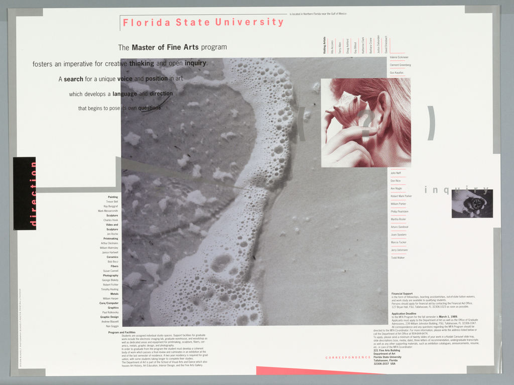 This is a print/poster. It is dated ca. 1989 and we acquired it in 1994. Its medium is offset color lithography support: paper. It is a part of the Drawings, Prints, and Graphic Design department.