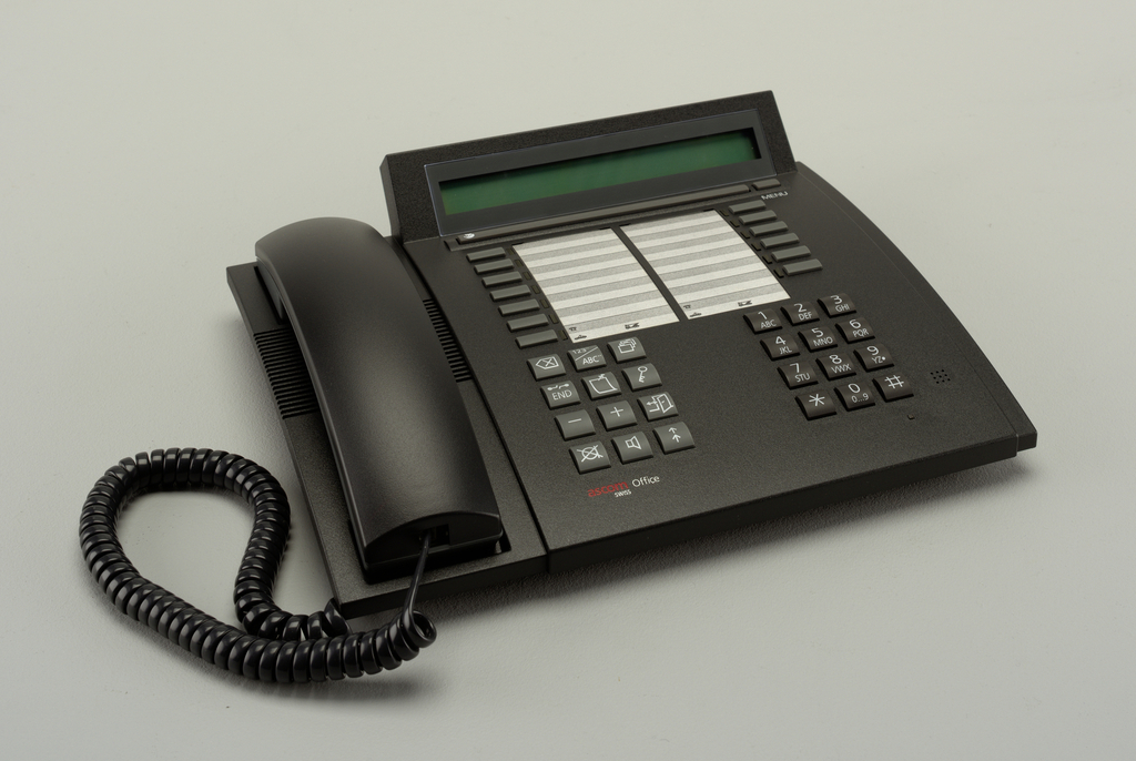 This is a telephone. It was designed by Martin Iseli, Svend Onø and Susanne Schwarz Raacke and manufactured by ASCOM Business Systems AG. It is dated ca. 1995 and we acquired it in 1995. Its medium is molded plastic, electronic components. It is a part of the Product Design and Decorative Arts department.