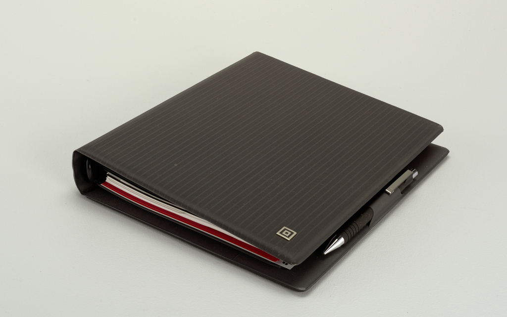 Organizer (Denmark); Designed by Time/Design; Manufactured by Time/System Internation a/s; plastic; binder: 4 x 23.7 x 20.2 cm (1 9/16 x 9 5/16 x 7 15/16 in.) box: 17.4 x 22.5 x 10.6 cm (6 7/8 x 8 7/8 x 4 3/16 in.); Gift of Time/Design; 1995-136-1-a/e
