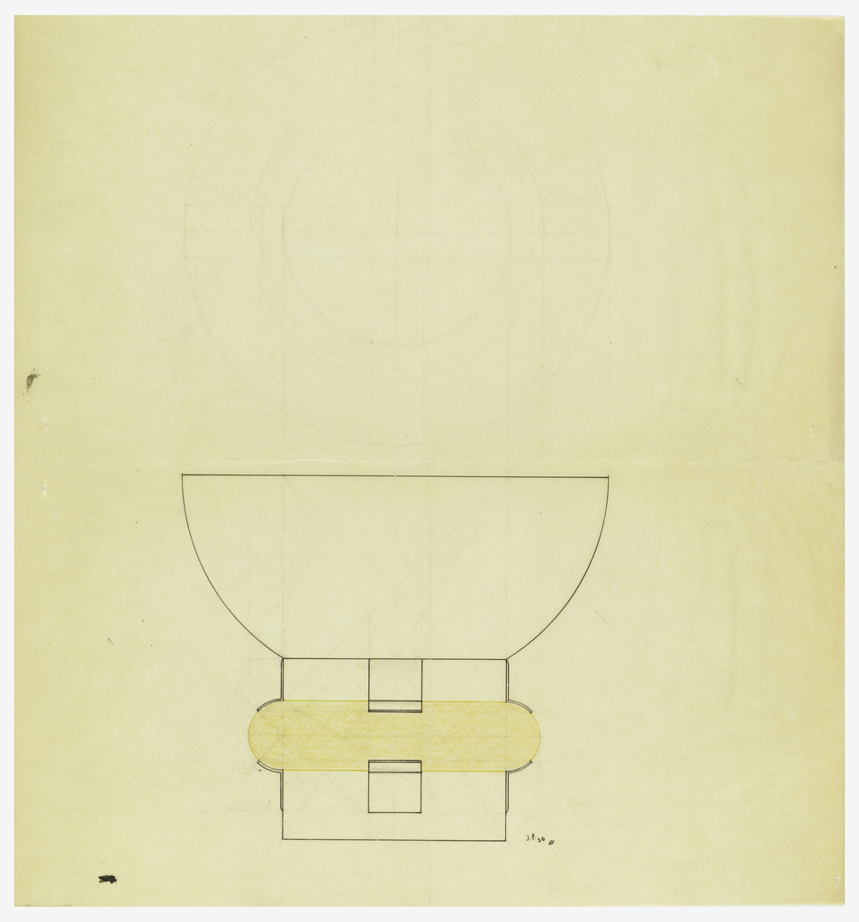 Drawing, Design for a Bowl; France; pen and black ink, yellow color pencil, graphite on cream tracing paper; 39.7 x 37.3cm (15 5/8 x 14 11/16in.); Gift of John Finguerra in memory of his brother Jim Finguerra; 1995-164-39