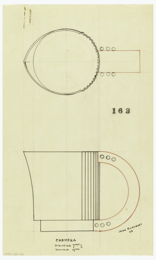 Inscribed in black ink, lower center: CREMERA/DIAMETRE 7 cms 1/2/HAUTEUR 9 cms; lower right: JEAN PUIFORCAT/43