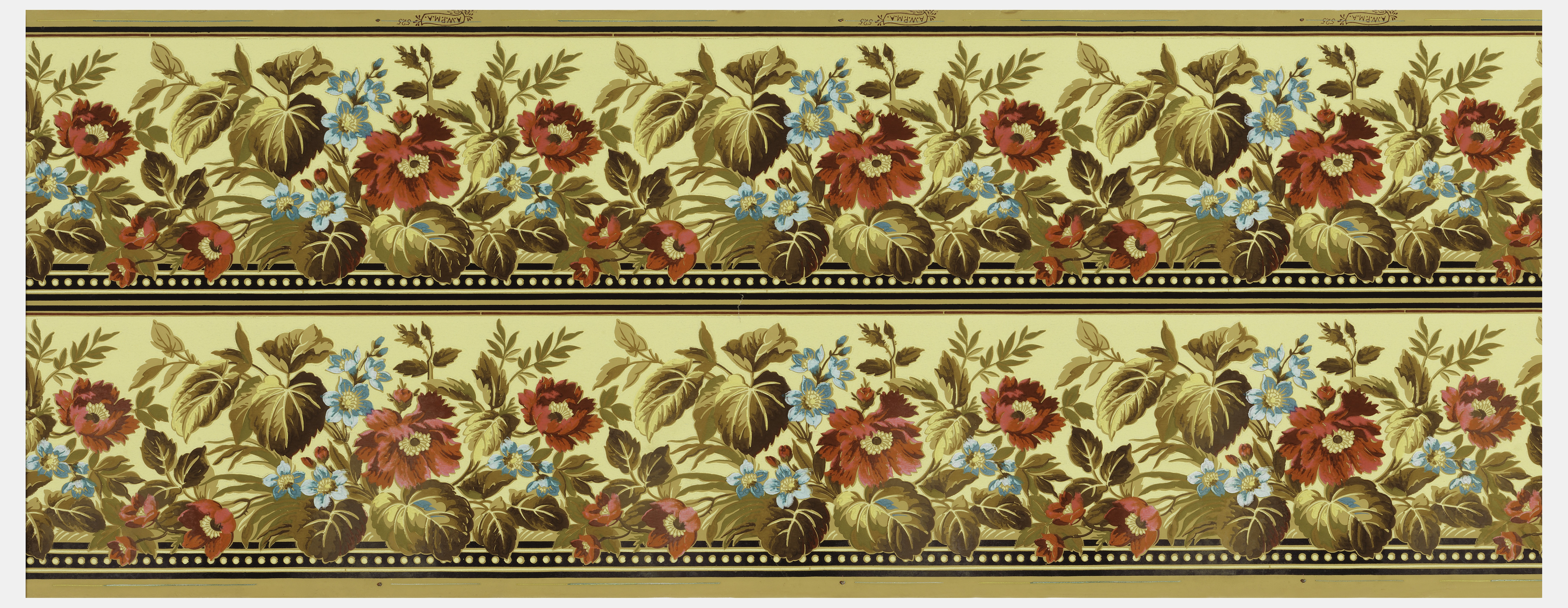 This is a Border. It was made by American Wall Paper Manufacturers' Association. It is dated 1880–87 and we acquired it in 1996. Its medium is block-printed. It is a part of the Wallcoverings department.