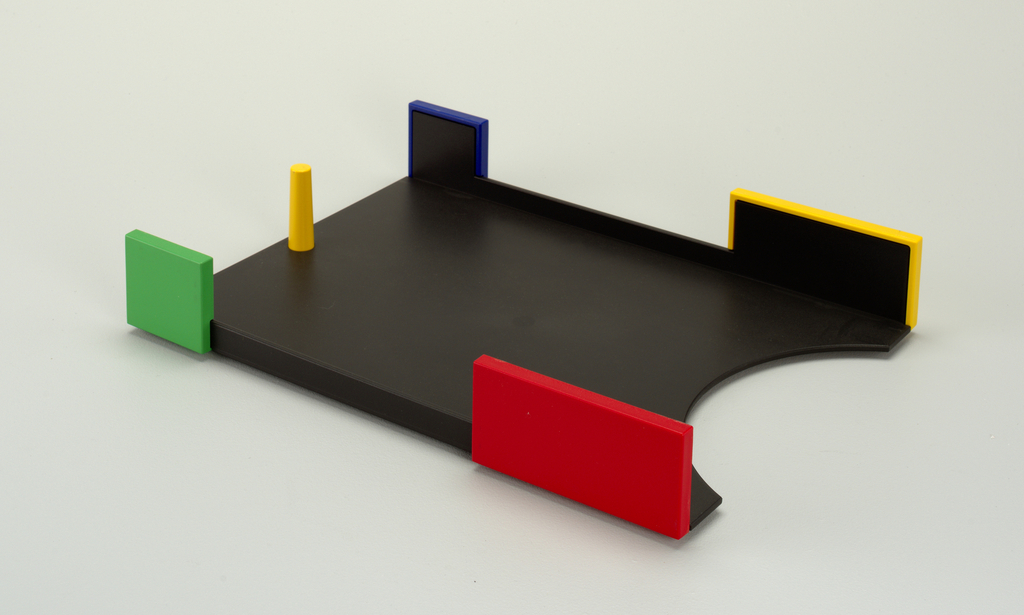 This is a Paper rack. It was designed by Kuno Prey and manufactured by Rexite SpA. It is dated 1991 and we acquired it in 1995. Its medium is plastic. It is a part of the Product Design and Decorative Arts department.