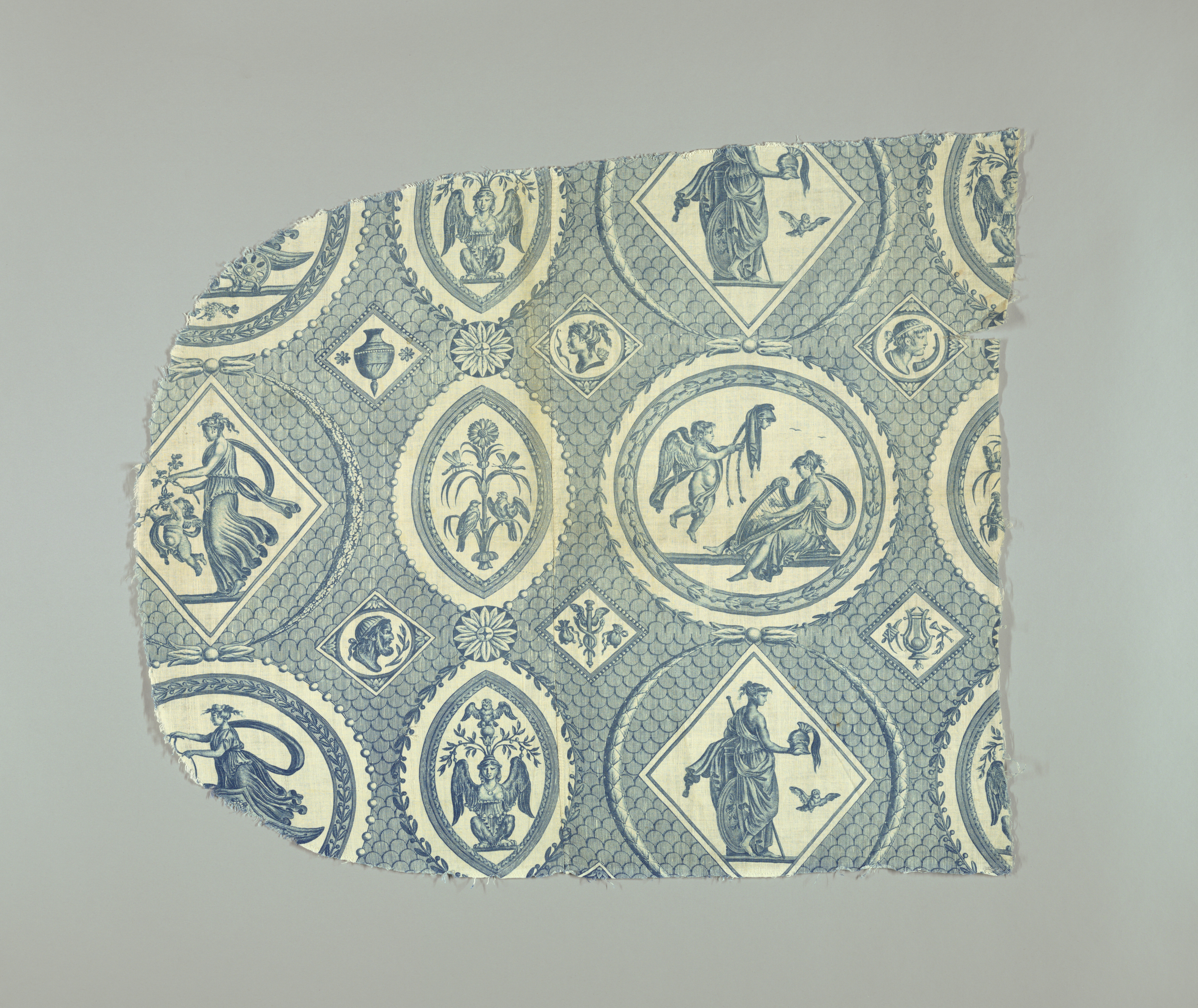 Fragment , The deities of Olympus (The Olympian Gods); Designed by Jean-Baptiste Huët (1745 – 1811); Company: Oberkampf & Cie. (France); France; cotton; Warp x Weft: 66 x 77 cm (26 x 30 5/16 in.) Repeat H (pattern): 51 cm (20 1/16 in.); Bequest of Elinor Merrell; 1995-50-62