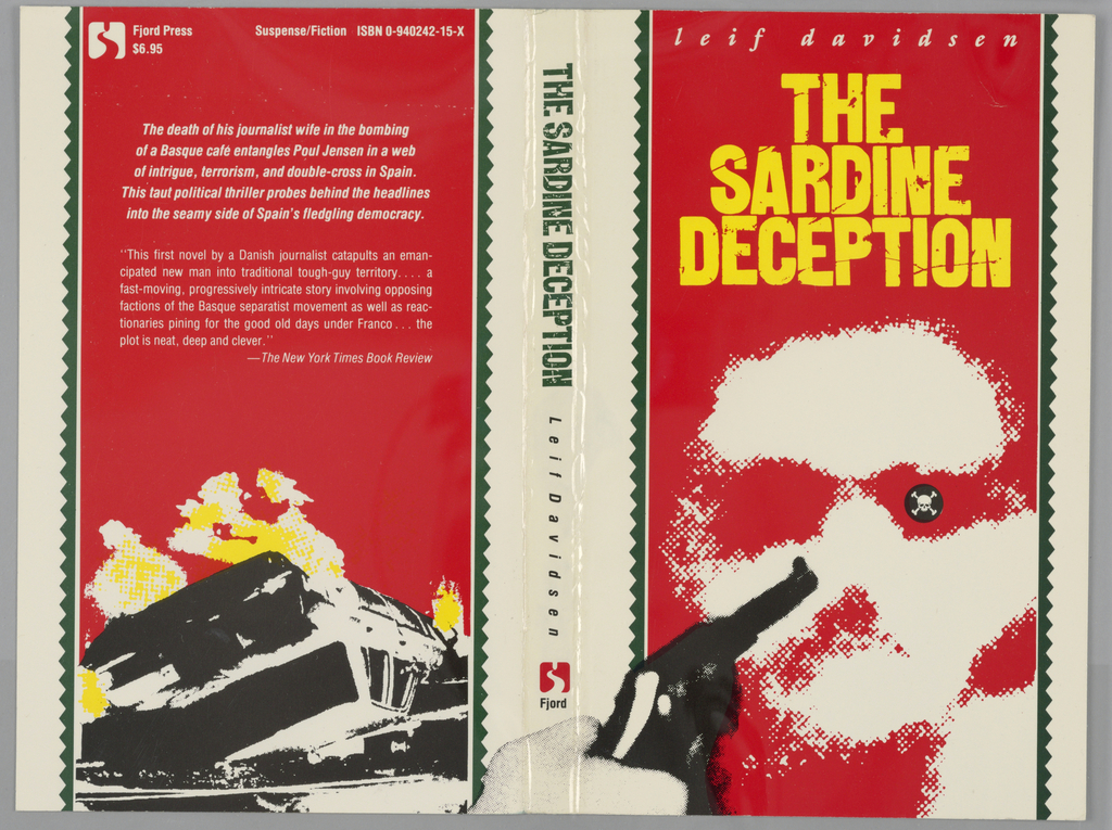 Book Cover, The Sardine Deception, by Leif Davidsen; Designed by Art Chantry (American, b. 1954); USA; lithograph on thin board; 21.6 x 28.7 cm (8 1/2 x 11 5/16 in.); Gift of Art Chantry; 1995-69-93