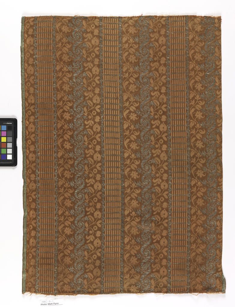 This is a Textile. It is dated 1680–90 and we acquired it in 1995. Its medium is silk, metal thread and its technique is damasse brocaded. It is a part of the Textiles department.