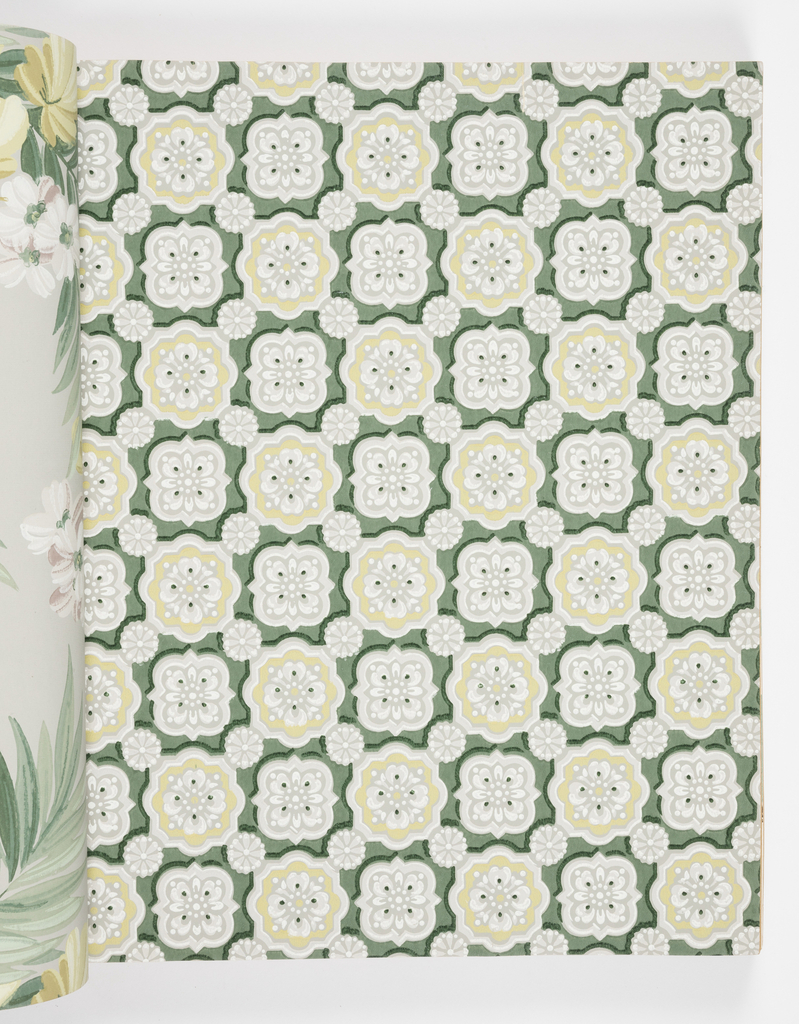 Sample Book, Charter Oak Decorations; Manufactured by Charter Oak Wallpaper Company; USA; machine-printed on paper; Overall: 50.5 x 45 x 5.5 cm (19 7/8 x 17 11/16 x 2 3/16 in.); Museum purchase from Friends of Wallcoverings Fund; 1995-87-2